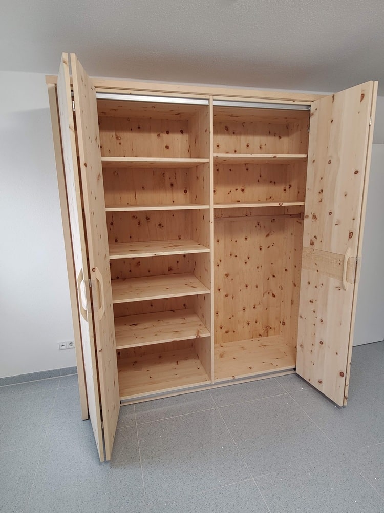 ✔ Falttürenschrank aus massivem Zirbenholz